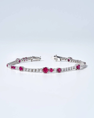 Cusi Bracelet with Rubins&Diamonds 18K White Gold 750